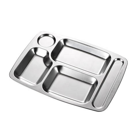 Piatti in acciaio inossidabile all'ingrosso vassoio per alimenti piatto per la cena diviso mensa scolastica 4 5 6 scomparti vassoio per alimenti rettangolare in metallo