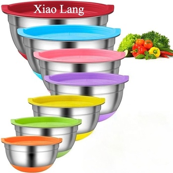 Fondo antiscivolo in Silicone insalatiera in acciaio inossidabile, ciotola per battere le uova, contenitore per frutta e verdura, contenitore per cucina